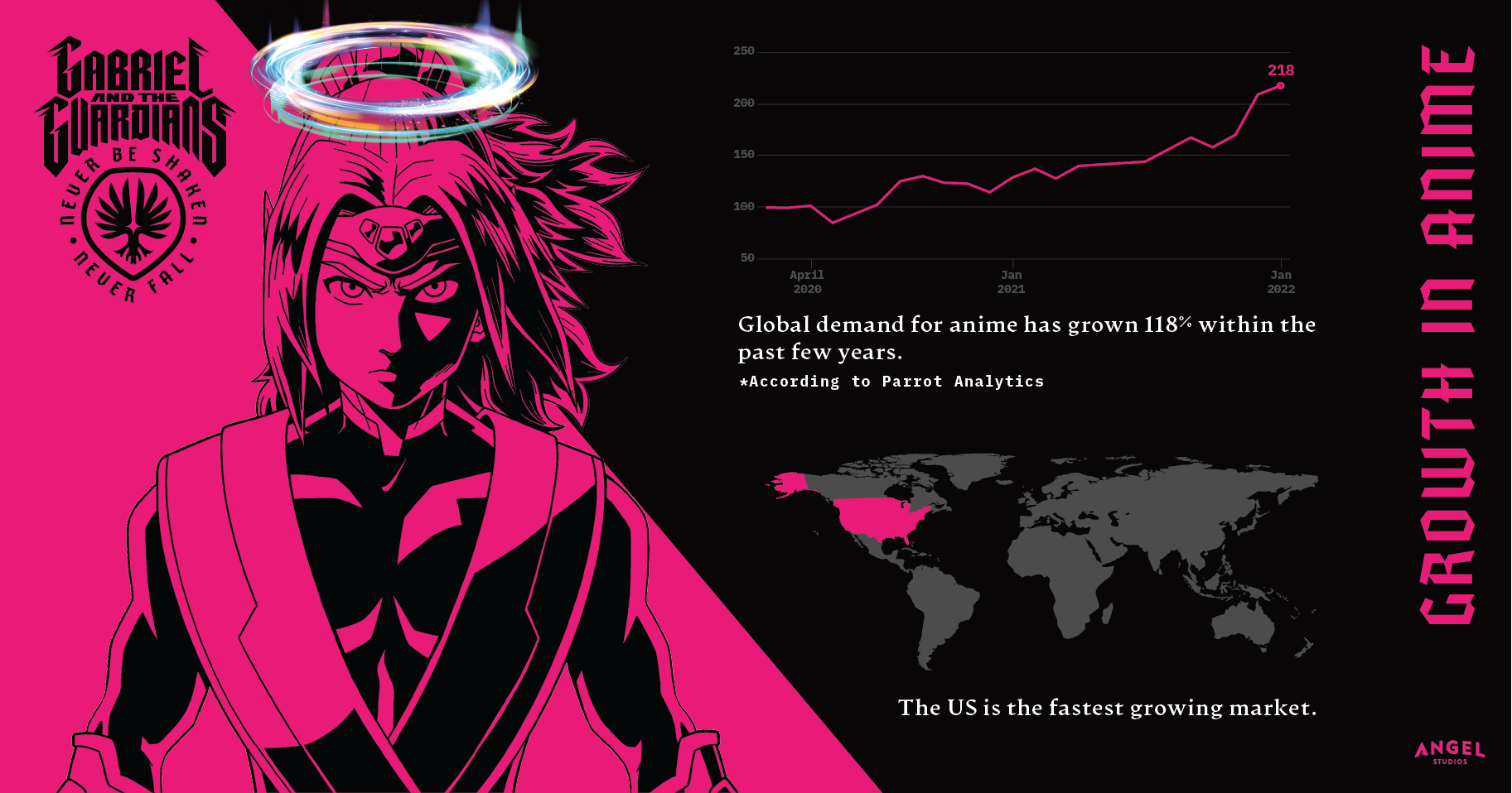 Of the top 25 most profitable franchises in the world 8 are anime or anime related. According to the Hollywood reporter Anime has become a globally popular juggernaut. Gabriel and the Guardians aims sit along side anime and other anime-infuenced series and paricipate in the potential success of the genre.