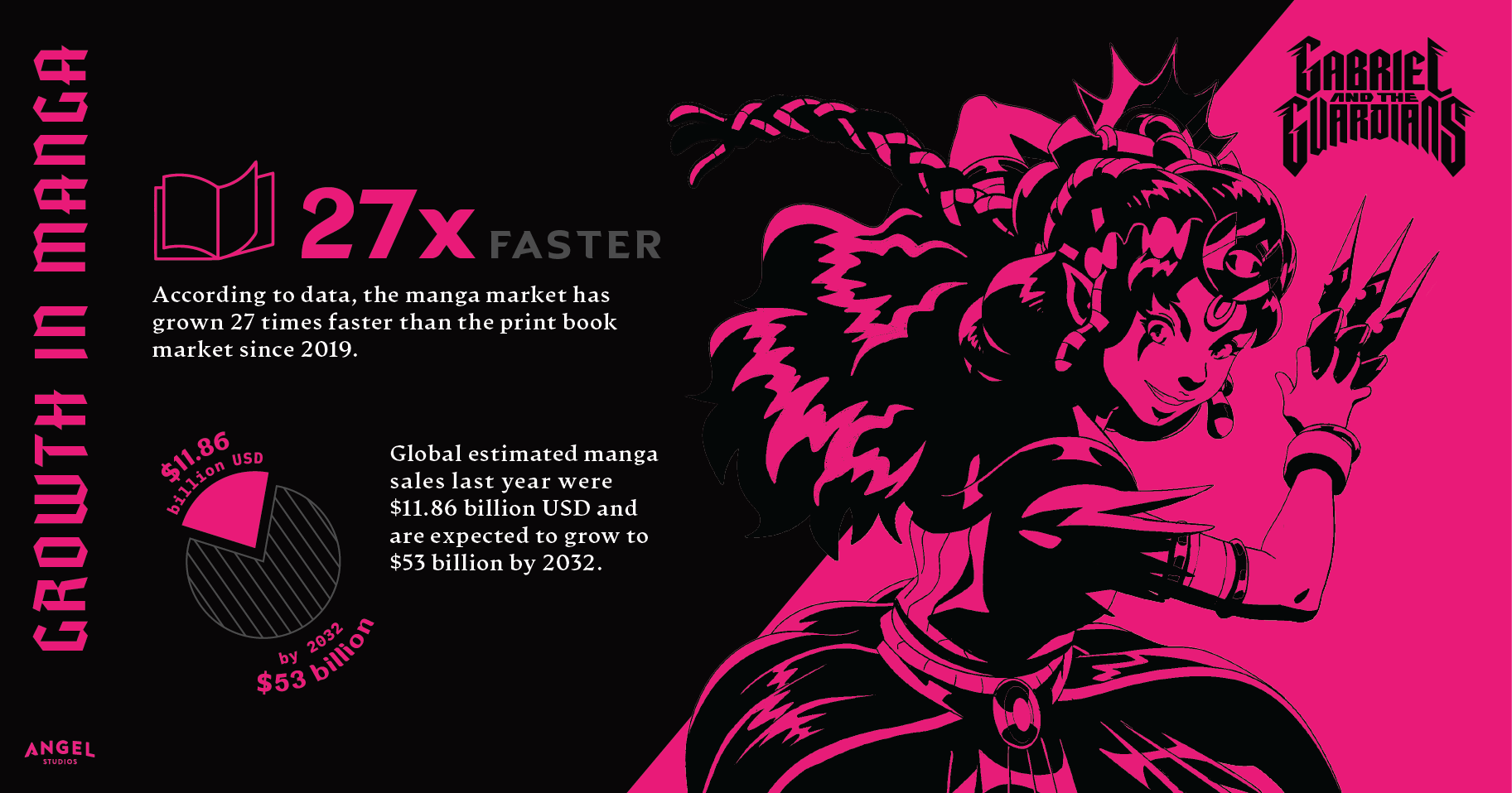 Joining the anime sensation, Gabriel and the Guardians will also be published as a manga book series. Manga's incredible growth, especially in the U.S., makes it a key part of our offering.